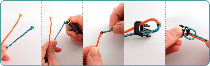 Joindre rapidement les 2 bouts. Le nylon, en fondant, agit comme une colle et permet d’obtenir une seule corde bicolore de 3 m.
