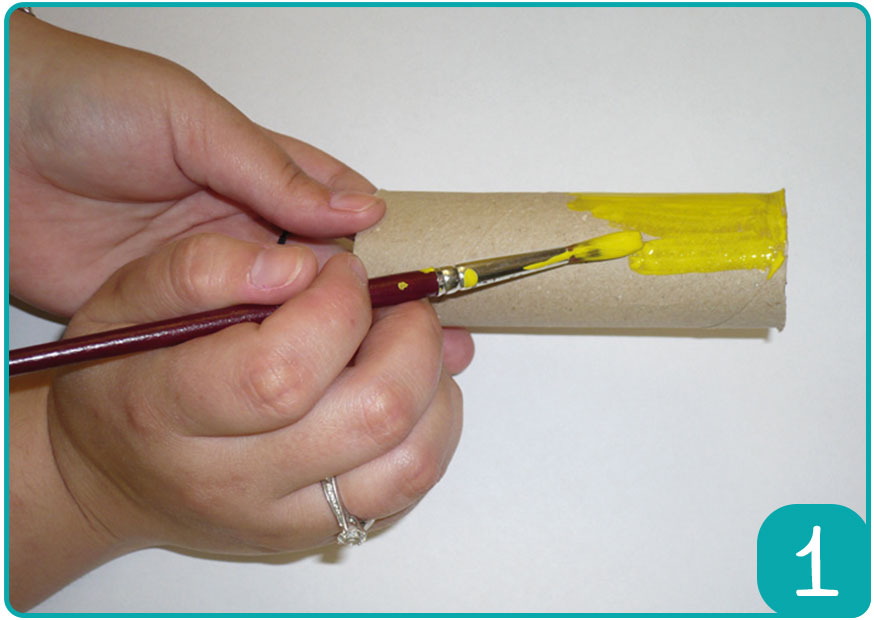 Etape 1 : Peignez le rouleau de la couleur de votre choix à l’aide de la gouache et laissez sécher.