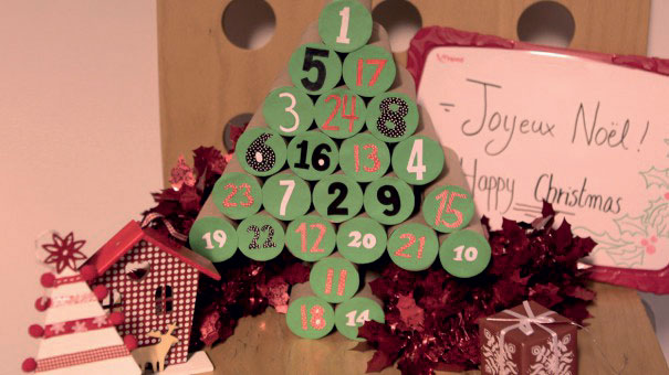 Etape 4 : Pour finir, remplir les rouleaux par l’extrémité ouverte avec les petites surprises ! Le compte à rebours de Noël peut maintenant commencer !