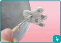 Etape 1 : Prenez une boule de polystyrène d’environ 15 cm de diamètre. Recouvrez-la de pâte autodurcissante GIOTTO Plastiroc. Lissez la pâte avec des mains humides.