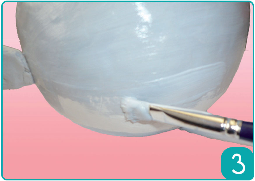 Etape 1 : Prenez une boule de polystyrène d’environ 15 cm de diamètre. Recouvrez-la de pâte autodurcissante GIOTTO Plastiroc. Lissez la pâte avec des mains humides.