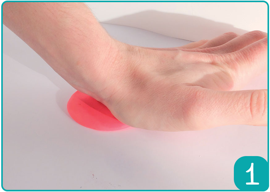 Etape 1 : Faire une boule de pâte FIMO®. Aplatir la pâte avec la main.