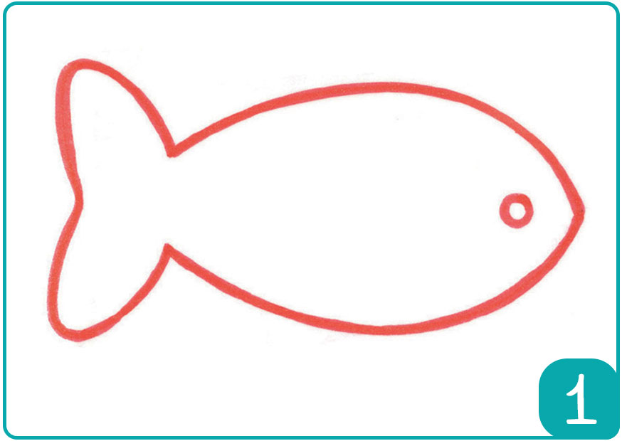 Etape 1 : Avec du papier calque, reproduire le dessin du poisson sur l’envers du morceau de cuir ou de feutre et le découper. Percer un trou avec la perforatrice pour former l’œil.