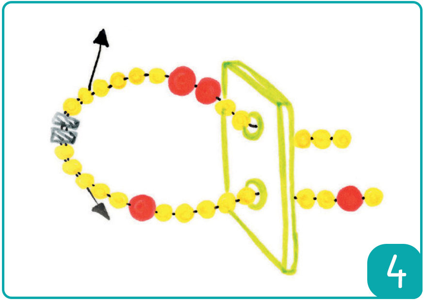Etape 4 : Une fois que la guirlande a atteint la longueur désirée, enfiler 1 perle à écraser sur chaque extrémité. Passer chaque fil dans la perle à écraser de l’autre extrémité et dans quelques perles. Bien tendre les fils et appuyer sur les perles à écraser avec la pince plate. Couper à ras.