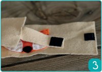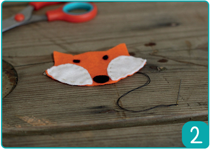 Etape 2 : Maintenant, coudre de la feutrine blanche pour les joues du renard et de la feutrine noire pour faire les yeux et le nez du renard.