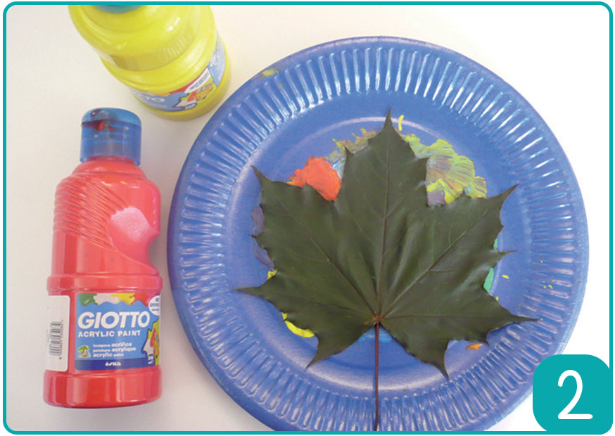 Etape 2 : Ensuite, placez la feuille d’arbre sur la peinture, en appuyant sur toute la feuille pour bien répartir la peinture.