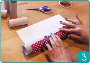 Etape 1 : Disposer 3 rouleaux sur le papier cadeau.