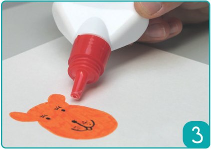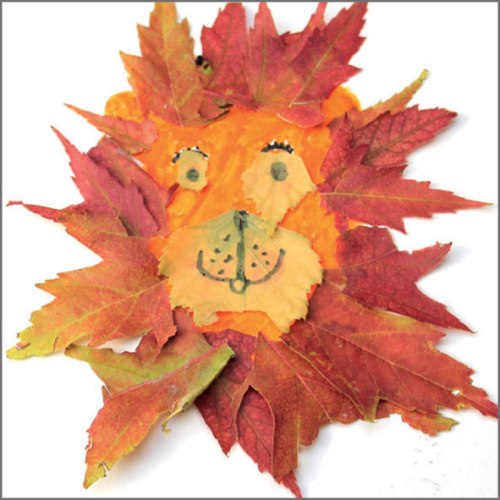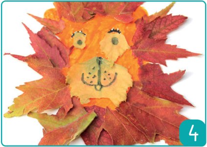 Etape 4 : Avant que la colle ne sèche, prendre les feuilles et les positionner autour de la tête de l’animal.