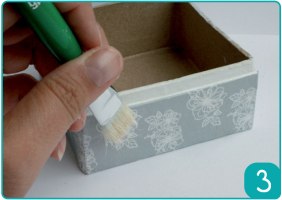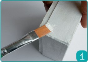 Etape 1 : Peindre le support en blanc et laisser sécher 1 heure. Appliquer le vernis-colle sur le support.