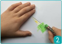 Etape 4 : Laisser voir le blanc du papier visible entre deux zones contiguës fait partie de l’effet graphique. Par contre, veiller à ce que les bords extérieurs de la feuille soient bien couverts sans laisser de blanc du papier visible.