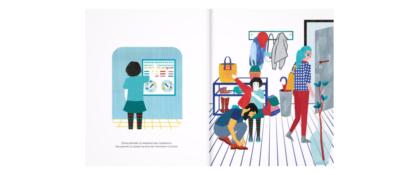 4 ans et + // Collection Les Pétoches // Olivia a peur: des monstres, des ombres, du noir, du brouillard… et aussi de se perdre dans la foule. Aujourd’hui, c’est un grand jour : elle va à la foire ! Ce qu’elle préfère, c’est le carrousel, et surtout son avion qui monte tout en haut. Mais elle a bien trop peur d’y grimper : et s’il s’arrêtait du côté opposé à celui de ses parents et qu’elle ne les retrouvait plus ? Lorsqu’enfin elle se décide, Olivia embarque pour un grand voyage, bien plus loin qu’elle ne l’aurait cru. Aux confins de son imagination.