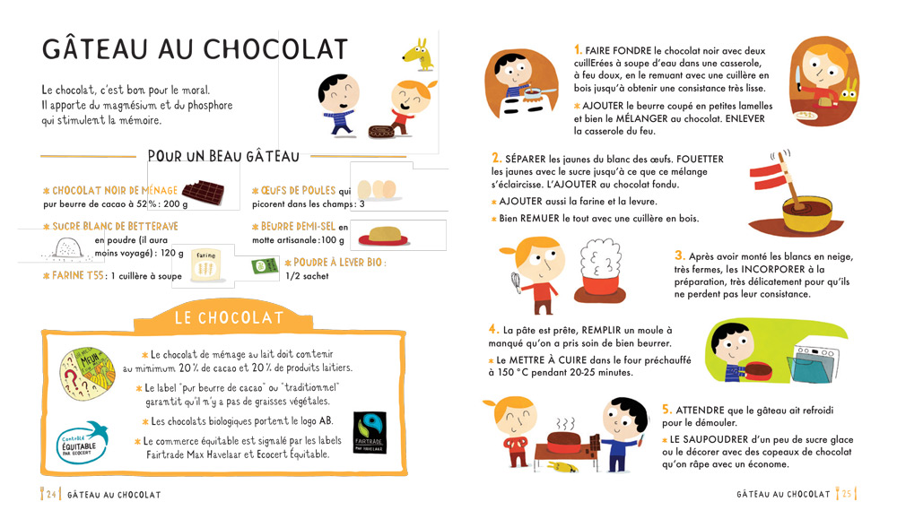 Chaque recette est expliquée simplement et photographiée à chaque étape pour être facile d’accès aux enfants.