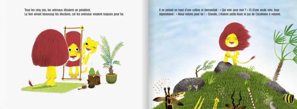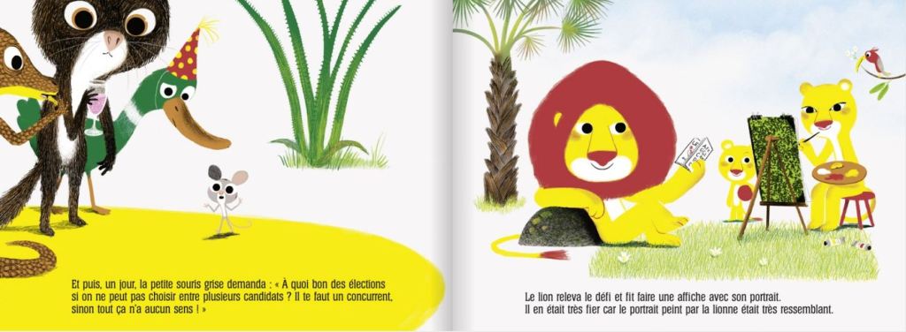 Quand les animaux se mettent à voter, c’est le rire (et surtout le bazar) assurés ! Les élections, chez les animaux, c’est quand même moins compliqué que chez les hommes. Un seul candidat, toujours le même : le Lion, toujours réélu à la majorité. Sauf que cette année, quelqu’un a décrété que ça suffisait. Il s’agit d’une petite souris grise, bien décidée à battre le Lion aux élections et à devenir Reine des animaux. La bataille électorale s’annonce rude… et drôle ! Car la candidature de la souris va en susciter toute une flopée !… Les fourmis réclament plus de travail pour tous, les bergers allemands davantage de lois et d’ordre et les renards l’abolition des frontières !