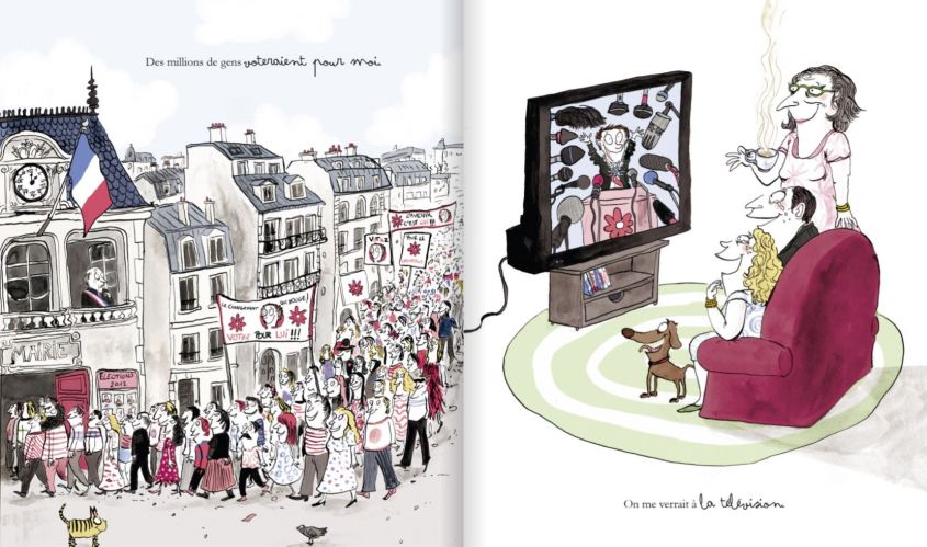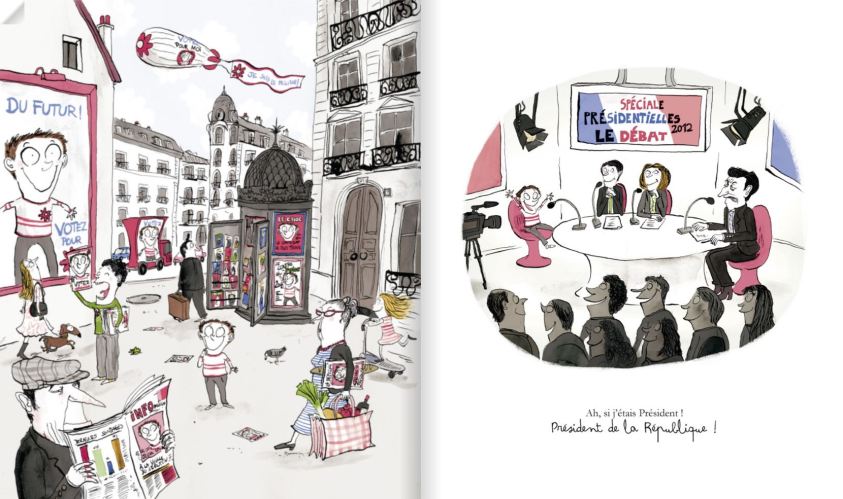 Si un enfant était président, le monde serait sans doute plus beau et plus rigolo ! Catherine Leblanc imagine avec délice les rêves de grandeur d’un petit garçon tandis que Roland Garrigue s’amuse visiblement beaucoup à les mettre en images ! À la fin de cet album, les lecteurs trouveront des pages libres pour inscrire leur propre programme électoral !