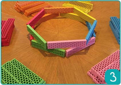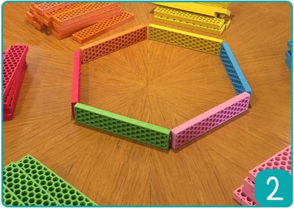 Chaque groupe forme un hexagone au sol, en disposant un Bioblo de chaque couleur, comme un grand cercle qu’on doit fermer