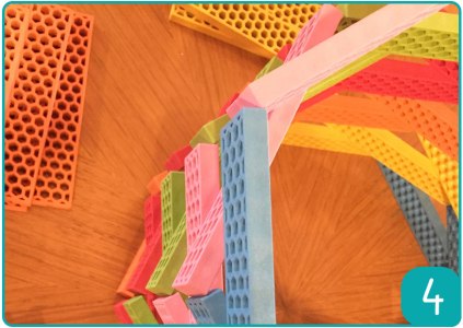 Maintenant, on forme le 2 ème étage… On décale les couleurs dans le sens des aiguilles d’une montre. On pose le Bioblo en quinconce avec l’étage précédent pour le faire tenir
