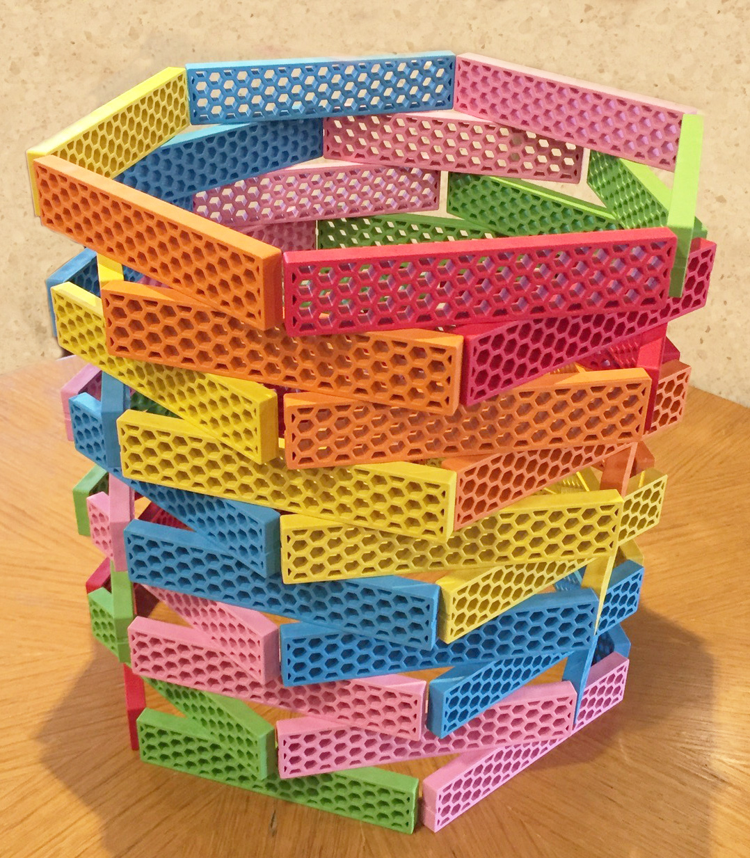 A partir du 3ème étage, on aligne au plus juste chaque Bioblo avec celui qui se trouve deux rangs en dessous, tout en continuant à décaler les couleurs vers la gauche