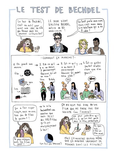 Les chapitres sont complétés par des pages d’outils théoriques indispensables à tout âge (argumentaires, test de Bechdel…) qui font de cette BD un véritable petit guide d’autodéfense féministe, salutaire à l’âge où s’installent les stéréotypes sexistes.