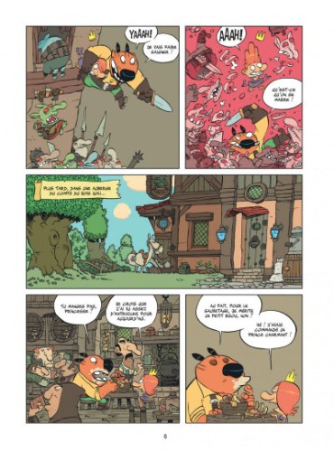 Tebo réécrit les contes de fées avec un plaisir évident. En détournant les codes classiques du genre, il invente une bande dessinée truculente, pleine de tripes, de bons mots et de personnages hauts en couleur.