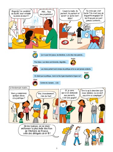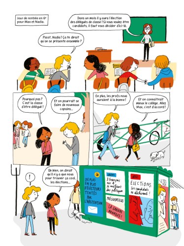 C’est décidé: Max et Nadia seront les prochains délégués de la 6e B! Et pour ça, ils vont préparer la plus belle campagne électorale de l’Histoire de France. Sauf que tous les adultes ont l’air de trouver que la politique, c’est hyper nul. Et surtout, eux, ils n’y comprennent rien…Alors Max et Nadia vont mener l’enquête et tout deviendra clair!