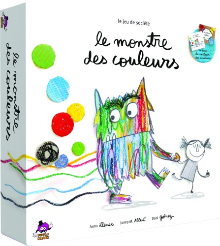 Contenu : 1 plateau de jeu, 1 jeton monstre des couleurs, 1 jeton petite fille, 1 dé, 8 jarres pour y stocker les émotions, 2 étagères pour y ranger les jarres et 5 marqueurs d’émotion.