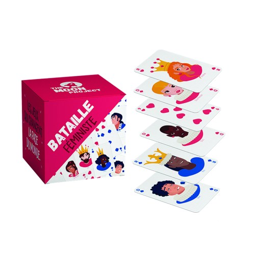 Une version moderne du célèbre jeu de bataille où les personnages sont sur le même pied d’égalité. Un jeu où roi (R), Dame (D), et Valet (V) se transforment en un duo égalitaire de Roi et Reine (R), Duc et Duchesse (D) puis Vicomte et Vicomtesse (V)… un jeu classique pas si classique !