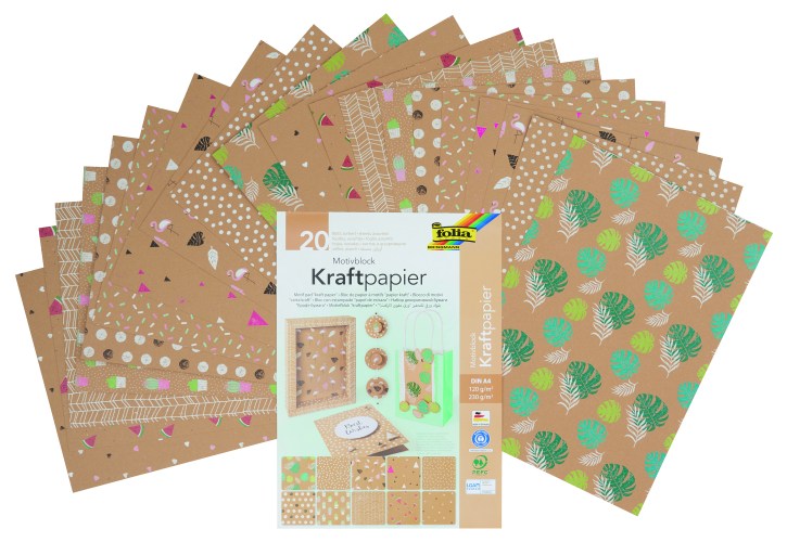 Le bloc de 20 feuilles kraft à motifs – 21×29,7 cm