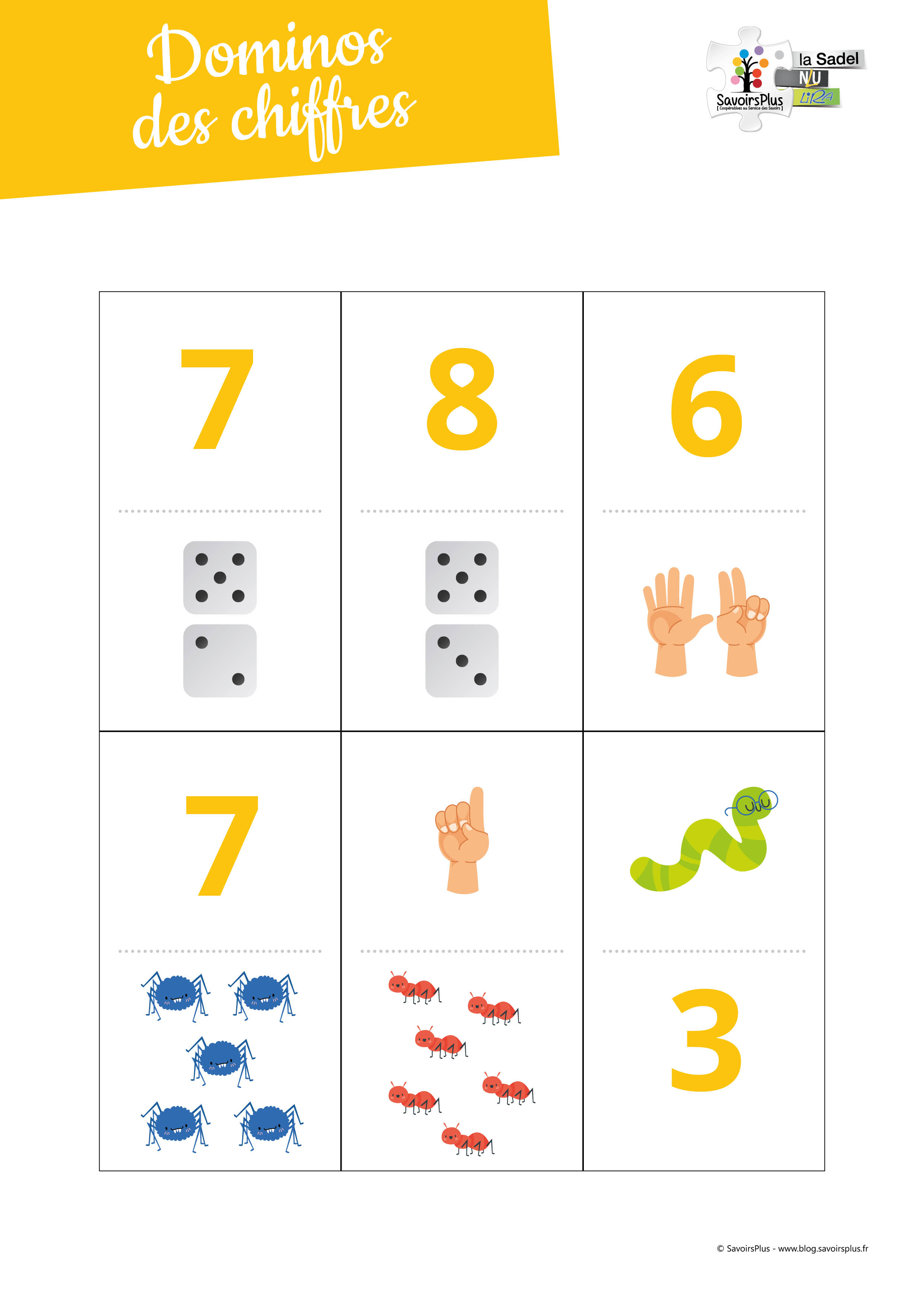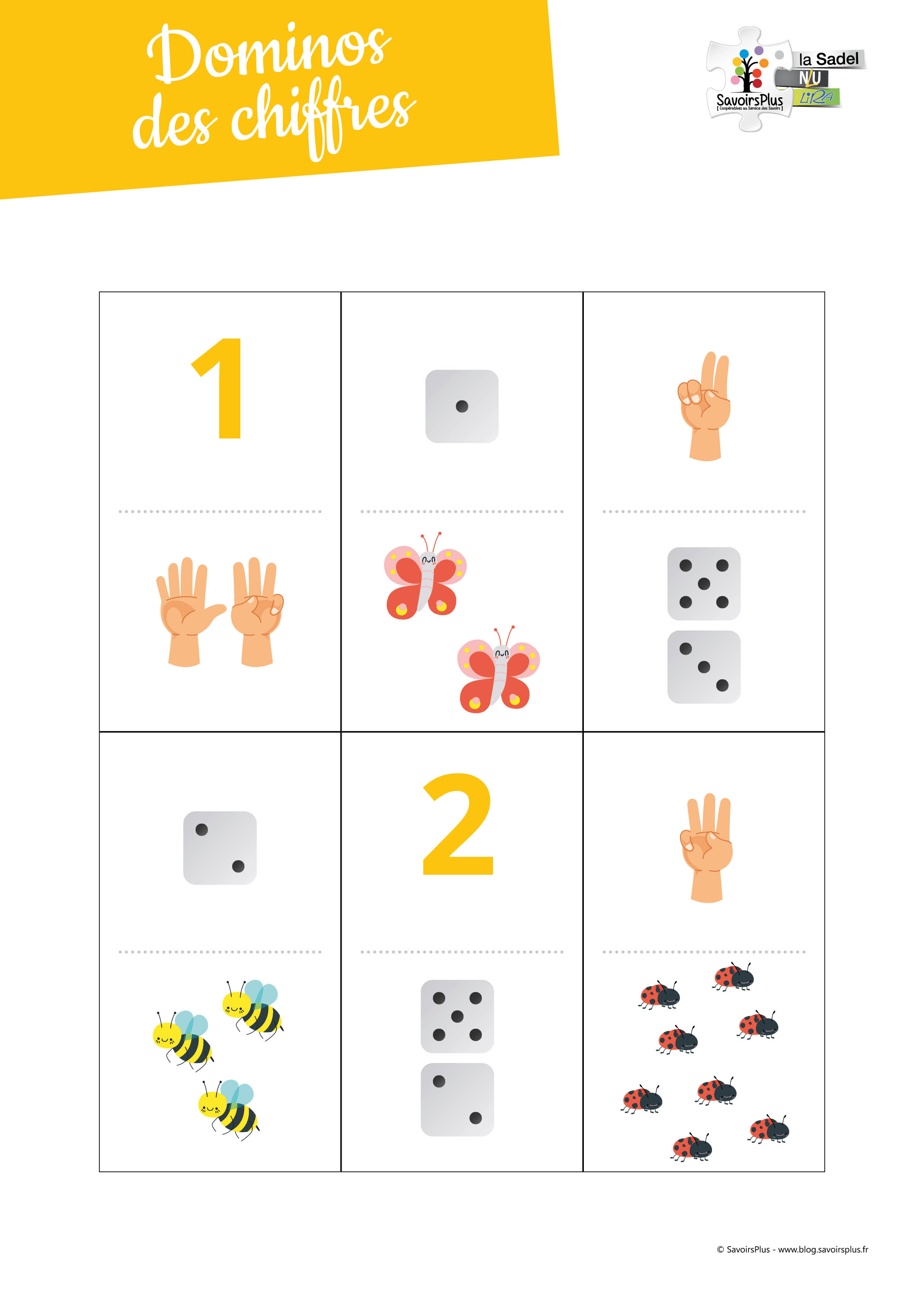 Préparation : imprimer sur un papier épais et plastifier les pages pour conserver les dominos plus longtemps. Couper chaque dominos.