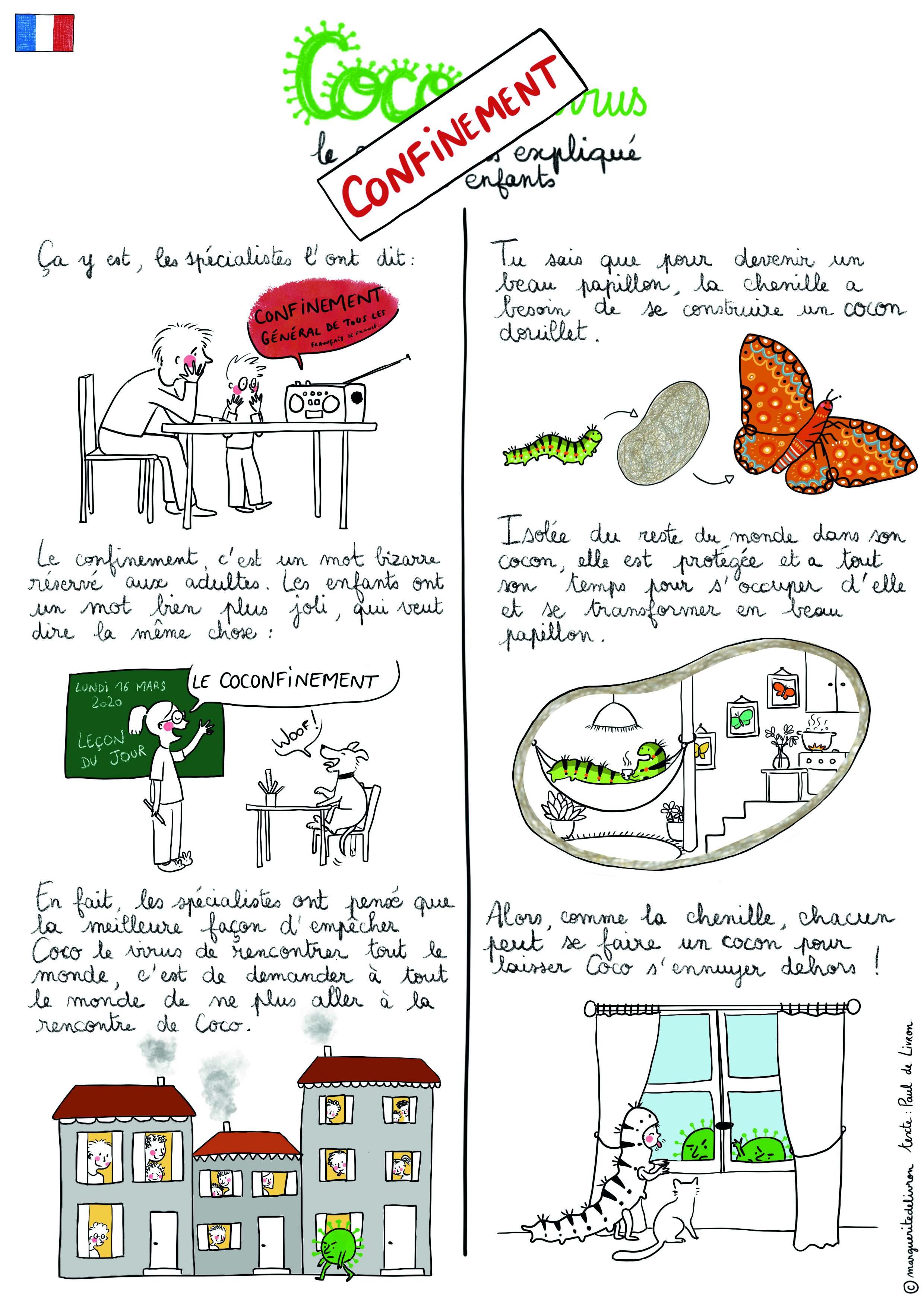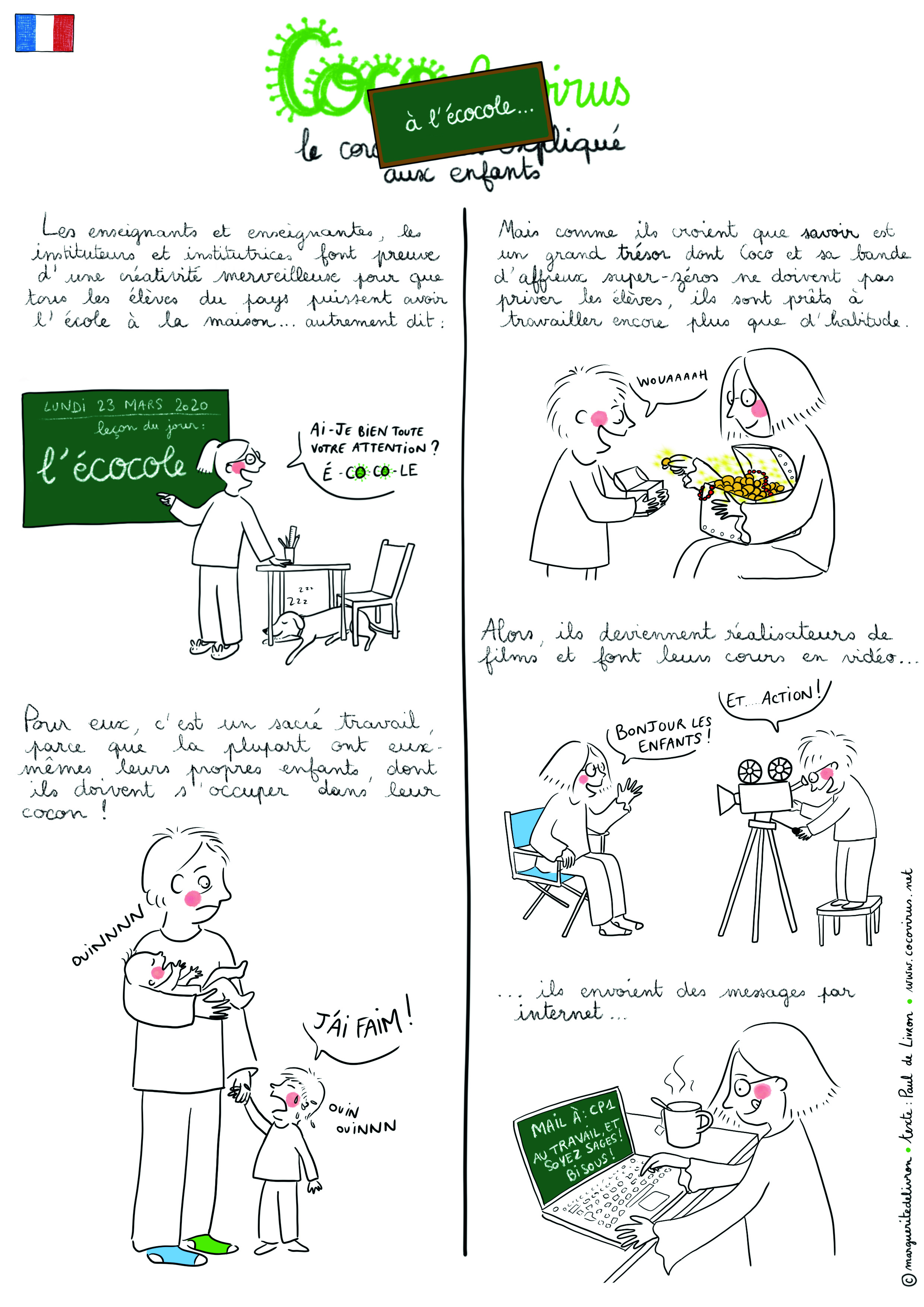 Alors quand, avec l’augmentation du nombre de cas de personnes malades dans le monde du coronavirus covid-19, les choses ont commencé à devenir compliquées dans leurs pays respectifs, ils ont pensé qu’il était important de créer des supports pour permettre aux parents, enseignants et animateurs d’expliquer simplement le coronavirus et la crise qu’il nous apporte, aux enfants.