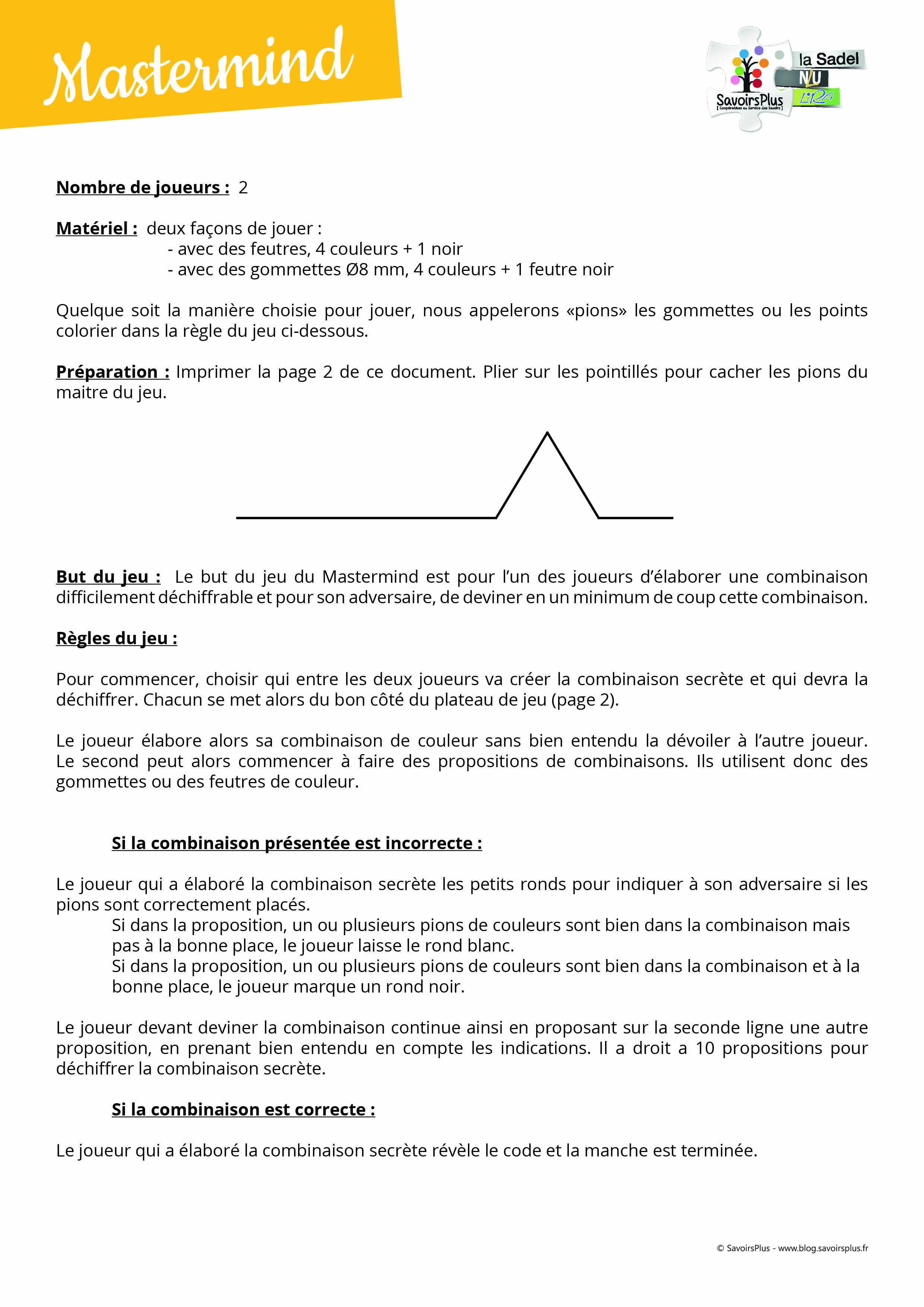 déchiffrer. Chacun se met alors du bon côté du plateau de jeu (page 2).