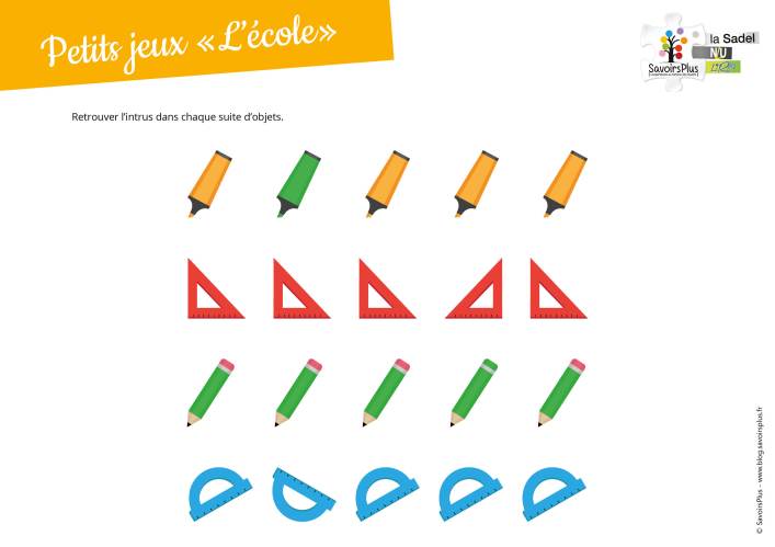 29 juin 20207 juillet 2021 Marion Téléchargement – Petits jeux « L’école » Un dossier de jeux de 14 pages sur le thème de l’école ! Pistes graphiques, images à relier, jeux des ombres… Téléchargez ici le fichier pdfTélécharger Évaluez ceci :Partager : Partager sur Facebook(ouvre dans une nouvelle fenêtre) Facebook Partager sur Pinterest(ouvre dans une nouvelle fenêtre) Pinterest Partager sur WhatsApp(ouvre dans une nouvelle fenêtre) WhatsApp Articles similaires