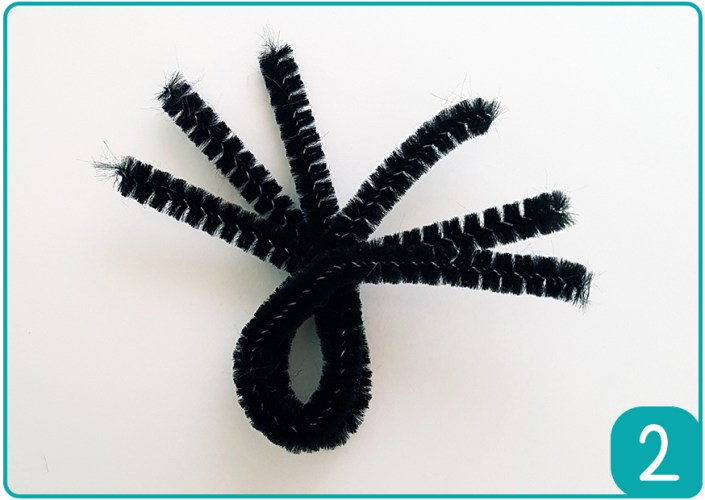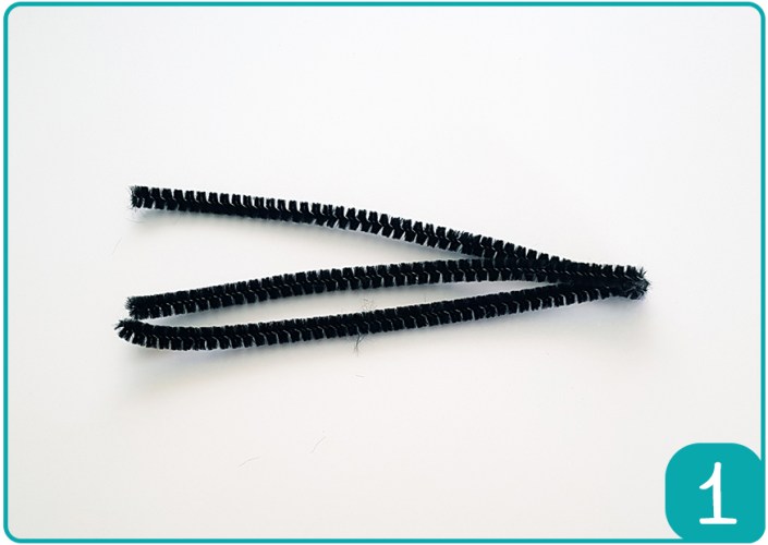 Etape 1 : Couper 3 brins de chenille noire d’environ 15 cm.