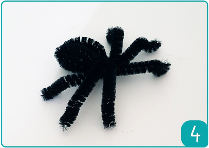 Etape 4 : Plier de petits coudes au bout de chaque patte. Donner un peu de volume au corps. L’araignée est prête à grimper partout !!