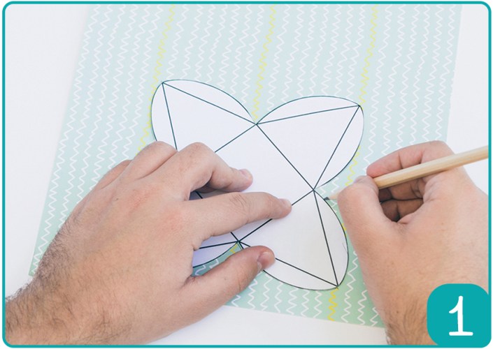 Etape 1 : Télécharger et imprimer le modèle et le découper avec une paire de ciseaux. Placer le gabarit sur le papier décoré et tracer le contour avec un crayon. Transférer les lignes du gabarit sur le papier à l’aide d’une règle. Assurez-vous de travailler proprement et avec précision.