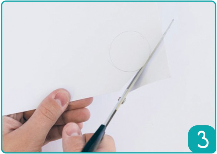 Etape 3 : Pour les numéros du calendrier de l’Avent, tracer un cercle sur un papier blanc épais puis découper ce cercle avec des ciseaux.