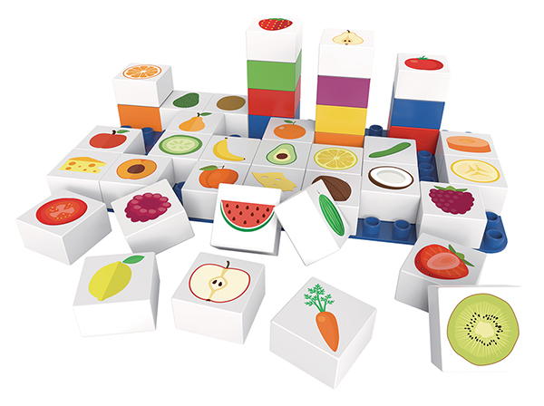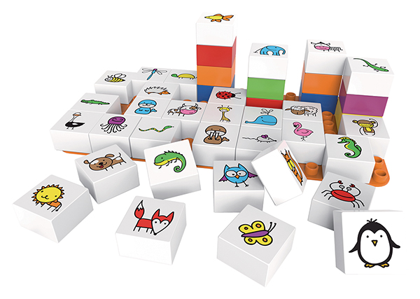 Contenu : 60 blocs de construction colorés, des cartes d’apprentissage et un manuel d’apprentissage multiples.
