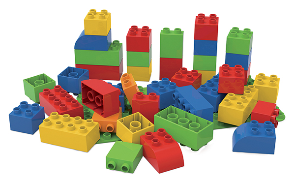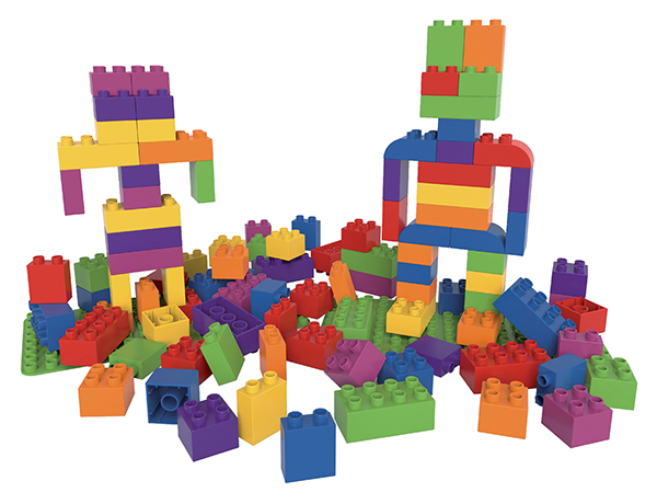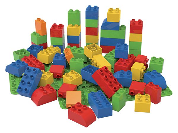 Contenu : 40 blocs de construction colorés, une plaque de base et un manuel d’apprentissage multiples.