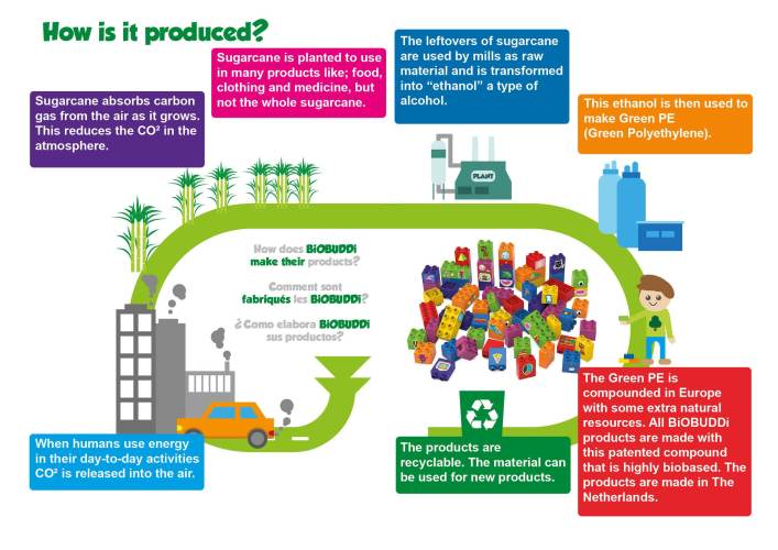 BioBuddi s’est donné une mission, construire un avenir meilleur pour nous et nos enfants. BioBuddi y travaille chaque jour en produisant des jouets écologiques qui ne nuisent pas à notre planète. Pour y parvenir, ils utilisent des restes de la plante de canne à sucre. Ils transforment ces restes en les mélangeant à d’autres ingrédients naturels pour créer la matière de base de leurs briques.