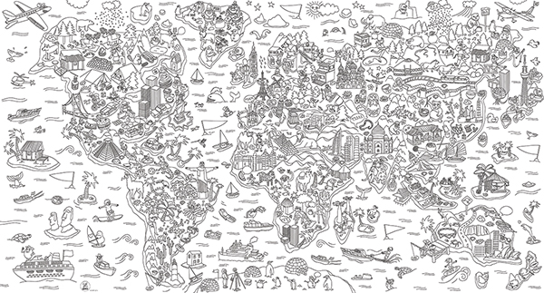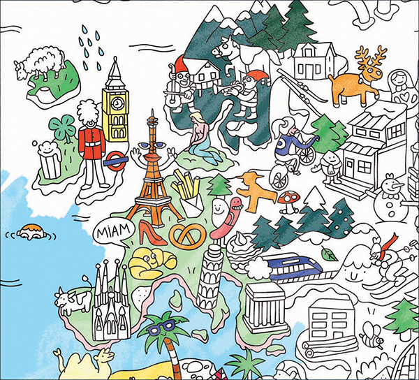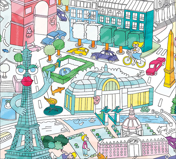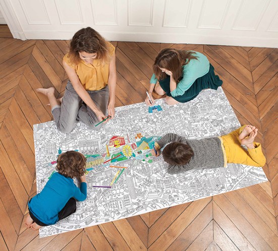 Les couleurs vives, le dessin et l’humour caractérisent l’essentiel de la collection. Les posters géants XXL (1,80×0,98 m, papier 170 g) et posters géants (1×0,70 m) offriront de nombreuses possibilités pour occuper petits et grands seul, ou lors d’ateliers pédagogiques, en groupe. À dérouler au sol, à accrocher au mur ou à utiliser en nappe, relevez le défi de les remplir entièrement. Les sets de table permettront des réalisations individuelles.
