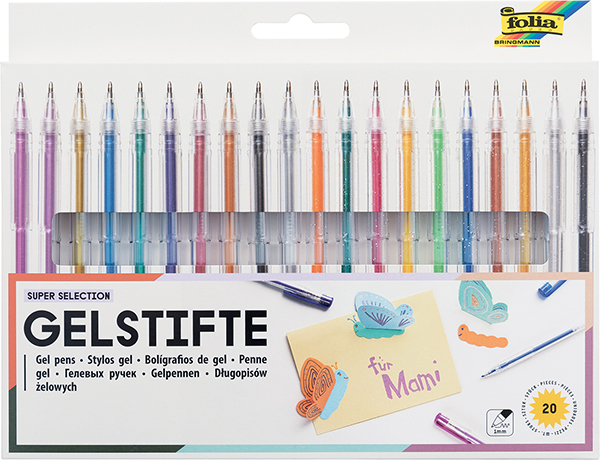 Ces 20 stylos bille en 20 coloris assortis disposent d`une mine d’1 mm. Ils donnent un air particulièrement joli et spécial à vos écritures grâce à leur effet métallique et à paillettes.