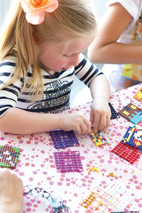 Un atelier pour 15 enfants, pour réaliser des tableaux avec des pixels en 3D carrés. Il suffit d’insérer les pixels sur les bases fournies pour créer des dessins, sans colle ni eau, ou fixation au fer, en suivant les modèles proposés ou en laissant libre court à son imagination.