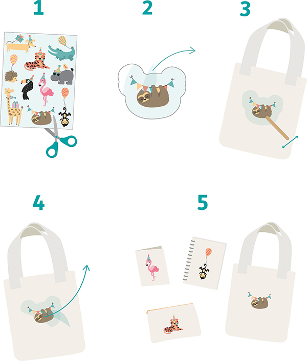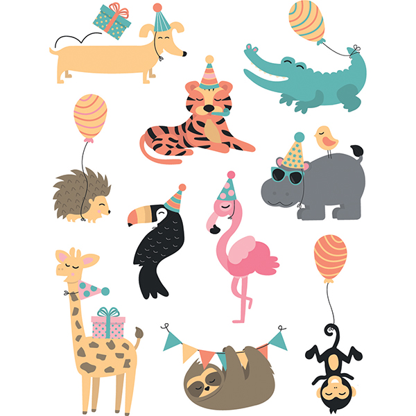 6 planches de 10 décalcomanies « animaux en fête » à utiliser sur textile ou papier. Dimensions du crocodile 6×6 cm. Ne pas passer à la machine à laver s’ils sont utilisés sur textile.