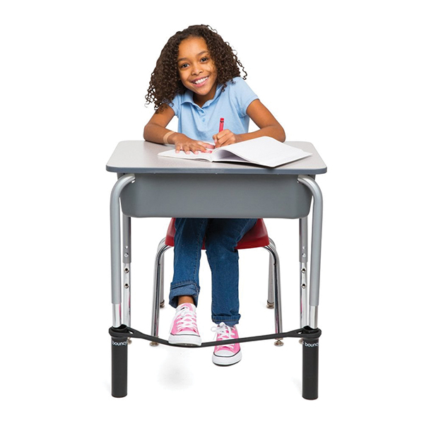 Un support pour pieds flexible qui facilitera la concentration des enfants, tout en leur permettant de libérer l’excès d’énergie silencieusement et sans distraire les autres élèves. Cela leur permettra de soulager l’anxiété, l’hyperactivité et l’ennui. Facile à installer et sans aucun outil, le BoucyBand se glisse dans les pieds avant de la table grâce à ces 2 tubes en plastique (10 cm de haut, ø 3,8 cm). Il n’empêche pas le déplacement des tables. La bande centrale en caoutchouc s’étire pour s’adapter aux tables avec un espacement de 50,8 à 71 cm entre les deux pieds.