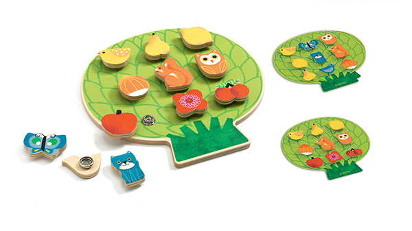 Un joli arbre en bois possédant 9 pressions, permettant de clipser les différentes formes en suivant les 16 illustrations proposées sur les cartes. Un jeu qui permettra de travailler la motricité fine des plus petits et d’aborder les couleurs, les formes ainsi que le repérage spatial (dessus, à côté, dessous…) avec les plus grands.