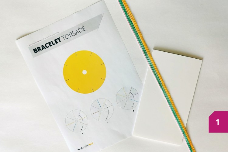 Etape 1 : Télécharger et imprimer le gabarit. Découper le cercle et tracer le contour sur le carton plume. Choisir les couleurs de fils de coton. Couper 7 fils de 50 cm environ.