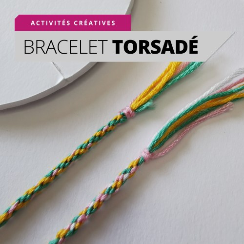 Etape 4 : Le bracelet va se former en dessous du cercle en carton plume au fur et à mesure du tissage. Lorsque le bracelet atteint la bonne taille, retirer les fils des encoches. Retirer le bracelet du cercle en carton. Faire un nœud pour terminer le bracelet.