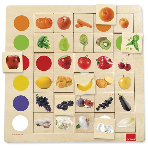 Sur un beau plateau en bois (32x32x1 cm), replacez les 30 fiches en bois sur la bonne ligne (dimensions de chaque fiche : 4,6×4,6×0,5 cm). Visuels très réalistes et sérigraphiés sur le bois.