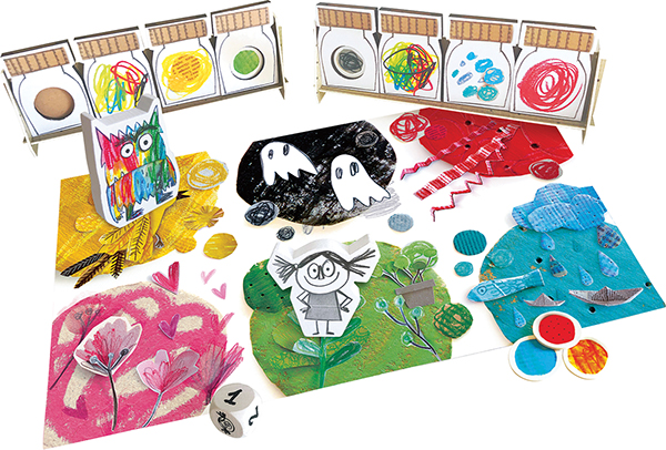 Contenu : 1 plateau de jeu, 1 jeton monstre des couleurs, 1 jeton petite fille, 1 dé, 8 jarres pour y stocker les émotions, 2 étagères pour y ranger les jarres et 5 marqueurs d’émotion.