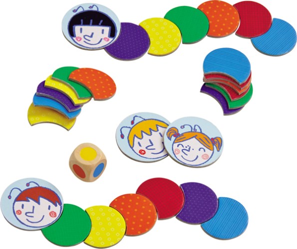 Contenu : 4 têtes de chenilles, 24 parties du corps, 1 dé multicolore et 1 règle du jeu.