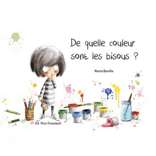 Minimoni adore peindre ! Elle a déjà peint des fusées, des gorilles, des fleurs, et voilà qu’elle aimerait dessiner un bisou. Mais… de quelle couleur sont les bisous ?